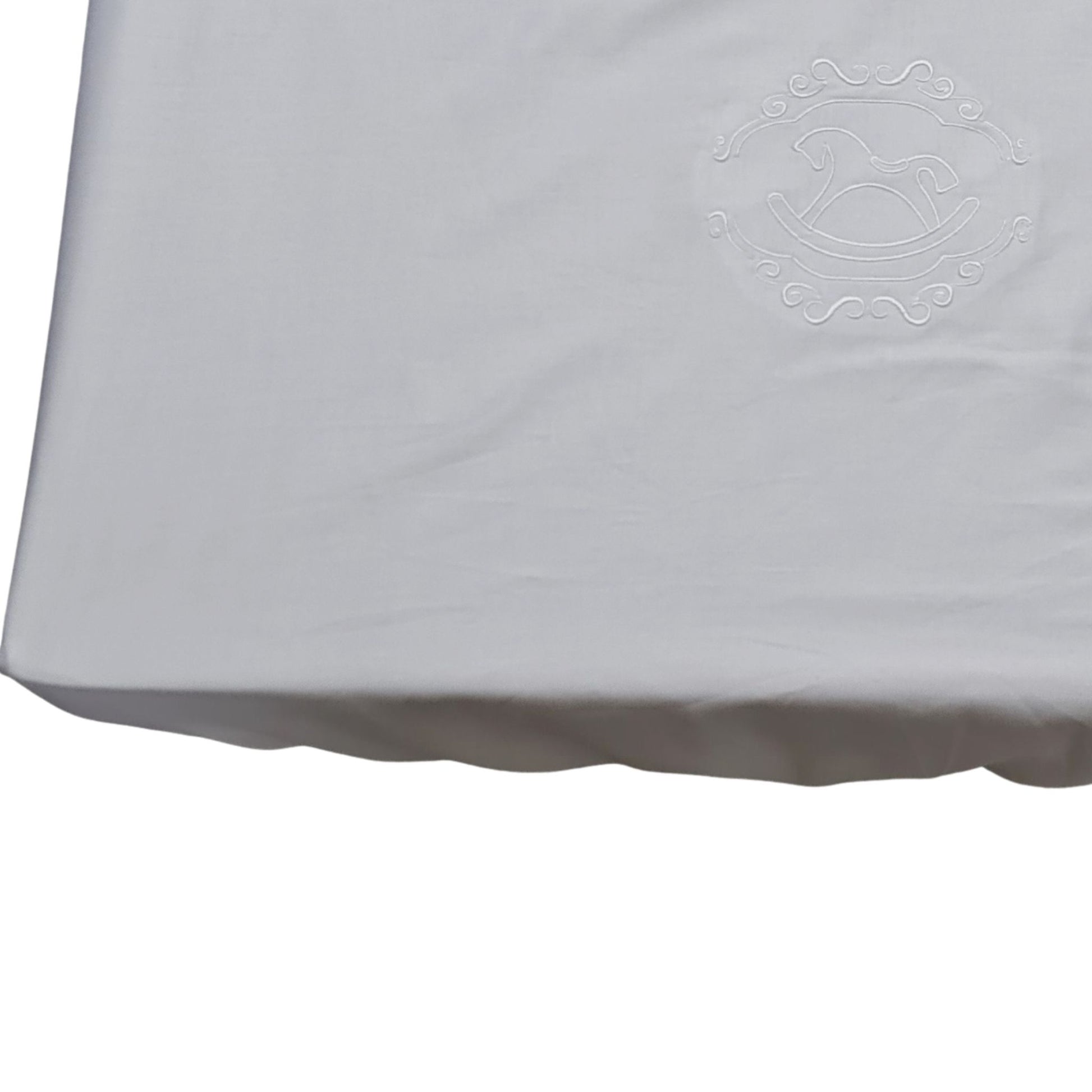 100% Cotton White Satin Sheet with Rocking Horse Embroidery.
