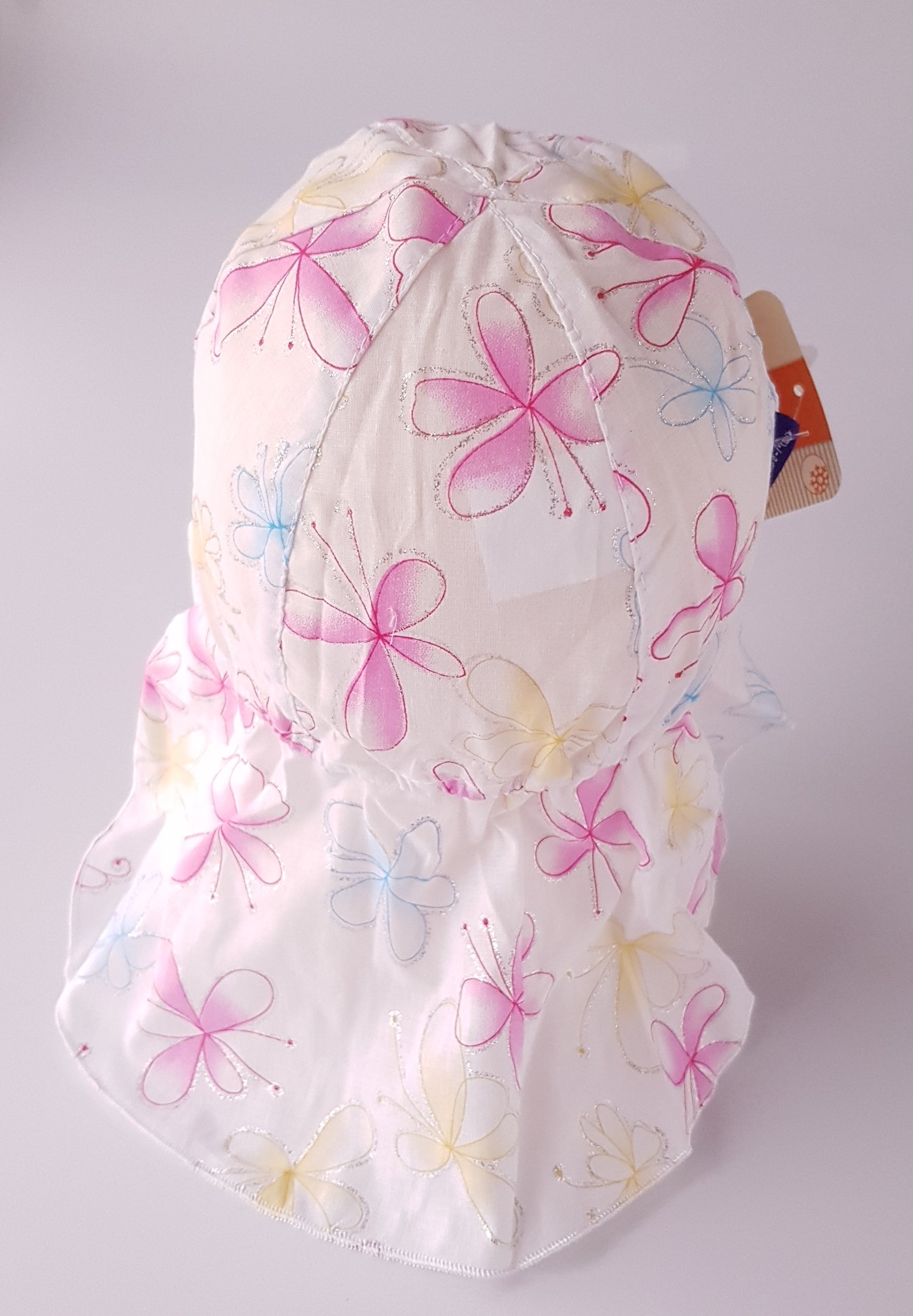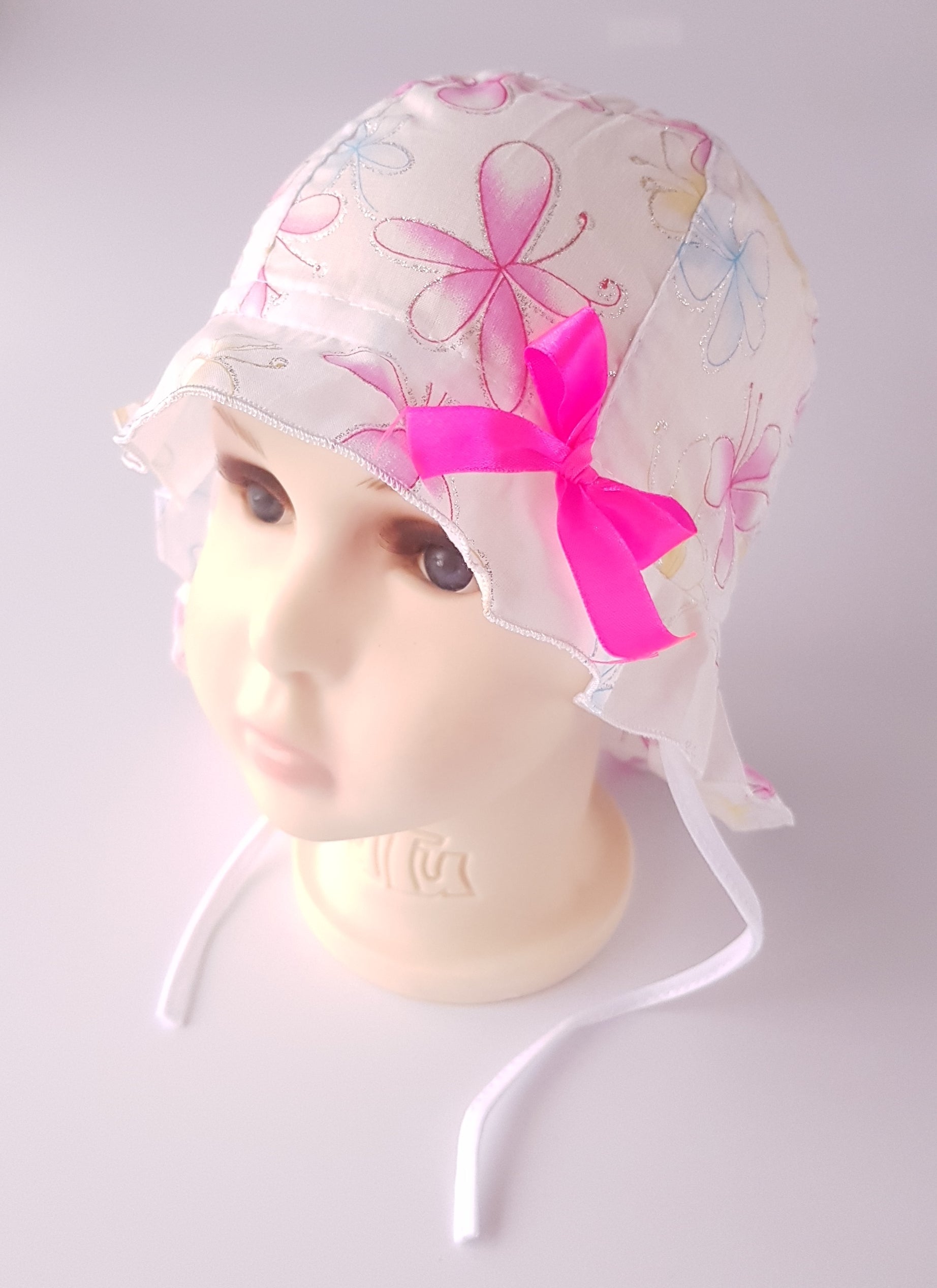 These posh hats with the strings are perfect for summer They are made from 100% cotton. The strings makes them comfy and help to keep the hat on your baby head. They have a little elastic at thr back so they adjust to the child's head. They are longer at the back so they cover the child's neck and protect against sun burns.